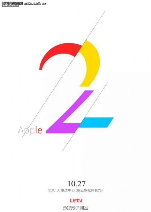 10月14日消息,昨日樂視官方放出宣傳海報,通過海報暗示將會于10月27日在北京萬事達中心召開一場新品發(fā)布會。同時畫面左邊有Apple的字樣,并且標紅了le兩個字母。