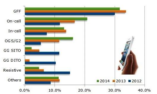 除此之外,面板業(yè)者在經(jīng)過(guò)前期準(zhǔn)備后,有機(jī)會(huì)再度發(fā)力,尤其是基于LCD的單層多點(diǎn)on-cell產(chǎn)品有機(jī)會(huì)在2014年規(guī)?;a(chǎn),推動(dòng)on-cell觸控架構(gòu)出貨量比重提升,中國(guó)面板業(yè)者如天馬4.5寸FWVGA產(chǎn)品、5寸720HD產(chǎn)品,京東方4.5寸qHD產(chǎn)品、5寸720HD產(chǎn)品皆有on-cell布局。
