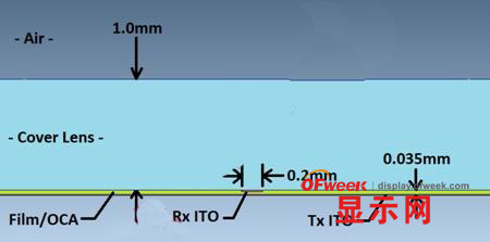為降低架構(gòu)成本并獲得更好的透明度,單層觸摸屏將Tx和Rx陣列安裝在單個(gè)ITO層上,并通過單獨(dú)的橋依次跨接各個(gè)陣列。因此,Tx陣列不能在LCDVcom平面和傳感器Rx電極之間形成屏蔽層。這有可能發(fā)生嚴(yán)重的Vcom干擾耦合情況。