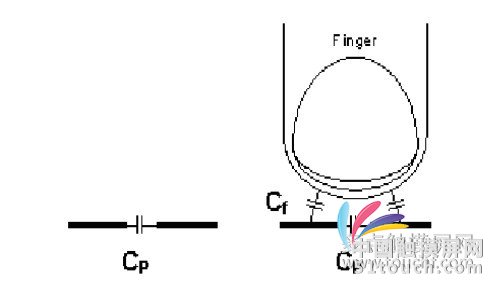 目前的電容式觸摸屏解決方案中,Cypress PSoC 產(chǎn)品以可編程,設計靈活,一致性好, 再加上高效的PSoC Express / PSoC designer 開發(fā)環(huán)境而處于領先地位。PSoCCapSense 技術是根據(jù)電容感應的原理使用CSA 或CSD 模塊來實現(xiàn)的。PCB 板或觸摸屏上相鄰的感應模塊或?qū)Ь€之間會存在寄生電容(見圖19 中的Cp),當有手指接近或觸摸兩個相鄰感應模塊時,相當于附加了兩個電容,它們相當于并聯(lián)在Cp 上的電容Cf。利用PSoC 的CSA 和CSD 技術可以檢測到 這個電容上的變化,從而確定有沒有手指觸摸。