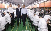 李克強(qiáng)考察鄭州富士康科技園 與郭臺(tái)銘駐足交談