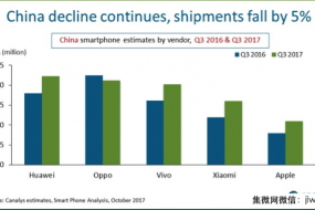 預(yù)計明年,全球前十大手機廠商中將有7家是中國公司:華為、OPPO、vivo、小米、聯(lián)想、中興及金立。其中,華為明年將在全球手機市場排名第三。OPPO和vivo將延續(xù)出色表現(xiàn),在明年保持在前五行列。