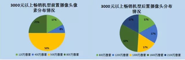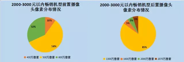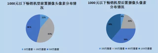從圖中前后置攝像頭的分布情況很明顯看出,千元以下的手機像素雖然有較為低端的存在,但中高端也成為其明顯的發(fā)展趨勢。