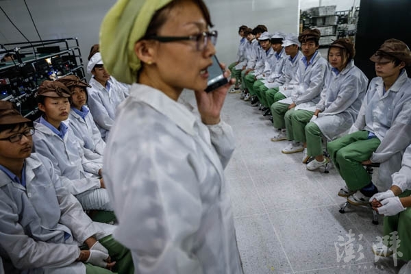新的機(jī)型和流水線馬上就要上了,王素芬正在給員工進(jìn)行培訓(xùn)。37歲的她之前在一家殼體公司,擔(dān)任LAB質(zhì)量工程師。“來這里工作了9年,我是不折不扣的老員工了”,王素芬扶扶鏡框,“未來消費(fèi)者對手機(jī)質(zhì)量會有更高的要求,智能手機(jī)仍是體驗(yàn)化、服務(wù)化的產(chǎn)品。作為質(zhì)檢人員,需要做到細(xì)心、有心和責(zé)任心才能把好品質(zhì)關(guān)。”