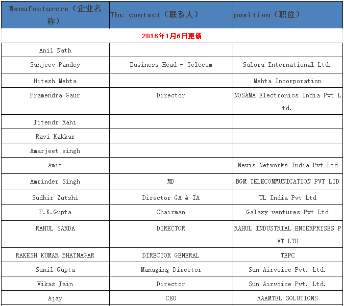 | Manufacturers(企業(yè)名稱) | The contact(聯(lián)系人) | position(職位) |