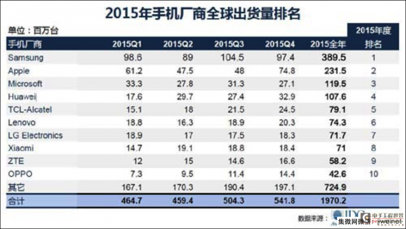(圖:IDC 2015年手機(jī)廠商全球出貨量排名)