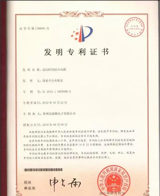 圖2.邁瑞微獲得授權(quán)的發(fā)明專利證書