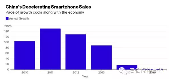 中國(guó)經(jīng)濟(jì)增長(zhǎng)已經(jīng)放緩,去年增速創(chuàng)下自1990年以來(lái)的最低點(diǎn)。去年中國(guó)智能手機(jī)銷(xiāo)量?jī)H增長(zhǎng)2%——創(chuàng)下Canalys開(kāi)始研究中國(guó)智能手機(jī)市場(chǎng)以來(lái)的最低水平。2011年中國(guó)智能手機(jī)銷(xiāo)量增長(zhǎng)了150%。市場(chǎng)研究公司Counterpoint Research分析師詹姆斯•嚴(yán)(James Yan)說(shuō),累積效應(yīng)意味著約半數(shù)的中國(guó)智能手機(jī)品牌將會(huì)消失,“品牌將減少到約150家。一些小廠商將會(huì)存活下來(lái),但包括大可樂(lè)在內(nèi)的許多廠商會(huì)破產(chǎn)”。