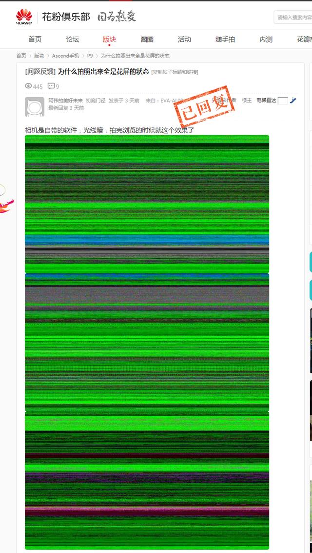 可想而知,華為P9拍照出現(xiàn)綠條紋并不是個(gè)例,而是一個(gè)大規(guī)模爆發(fā)的的質(zhì)量缺陷。