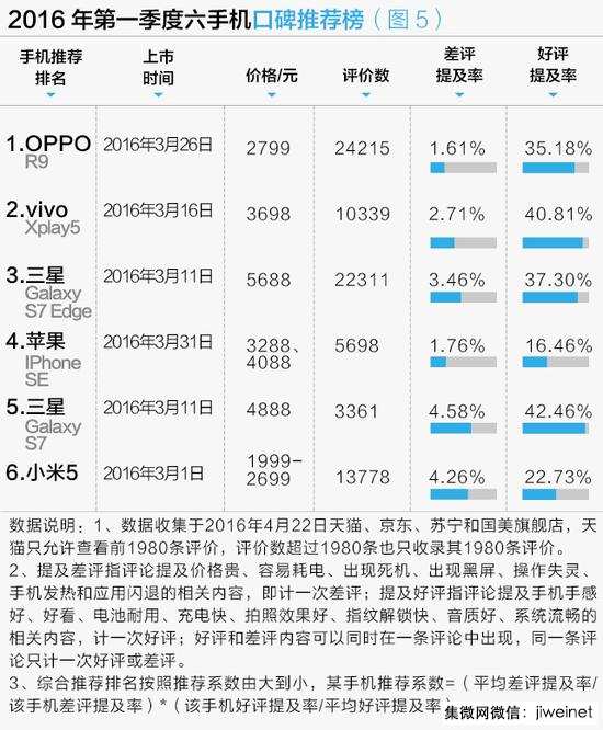 2016年一季度6款新手機(jī)消費(fèi)者口碑排行榜:OPPOR9居首,小米5墊底