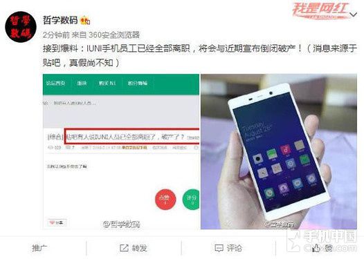 據(jù)網(wǎng)友爆料,IUNI(艾優(yōu)尼)手機(jī)的員工已經(jīng)全部離職,將會(huì)在近期宣布倒閉破產(chǎn)!
