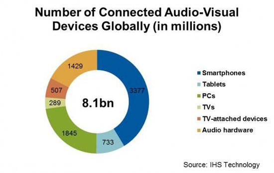市場調(diào)研機(jī)構(gòu)IHSTechnology發(fā)布最新報(bào)告顯示,截止到2015年年底,全球聯(lián)網(wǎng)設(shè)備已達(dá)81億部。這些聯(lián)網(wǎng)設(shè)備由智能手機(jī)、平板電腦、個(gè)人電腦、電視機(jī)及其附屬設(shè)備(如AppleTV和Chromecast)、視頻設(shè)備組成。在全球范圍內(nèi),平均每戶家庭擁有4部聯(lián)網(wǎng)設(shè)備。