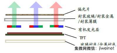 將OLED像素淀積或集成在TFT陣列上,通過TFT陣列來控制流入每個OLED像素的電流的大小,從而決定每個像素點的亮度,不同亮度層次的紅、綠、藍(lán)組合起來,即可形成不同的色彩點,顯示彩色畫面。
