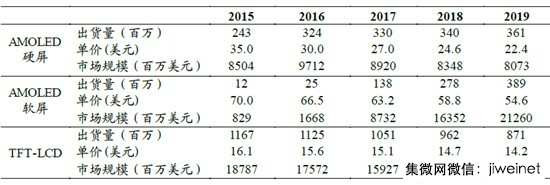 2015-2019年智能手機(jī)用AMOLED市場規(guī)模測算