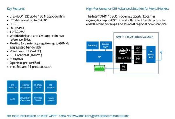 IntelXMM7360支持LTE-FDD、LTETDD、EDGE、DC-HSPA、TD-SCDMA五種通信模式,以及三載波聚合,4G網(wǎng)絡(luò)接入能力為Cat.10。但不支持CDMA網(wǎng)絡(luò)是個硬傷,只能做到雙網(wǎng)通,全網(wǎng)通還得再想辦法。