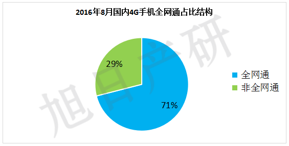 2016年8月全網(wǎng)通4G手機(jī)出貨量約為3141萬部,占比71%,環(huán)比上漲4.3%,仍然保持上升趨勢。