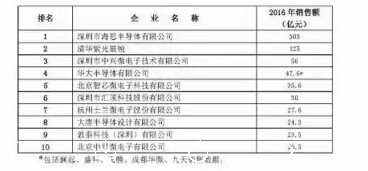 一、2016年中國集成電路設(shè)計十大企業(yè)