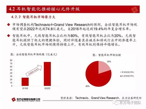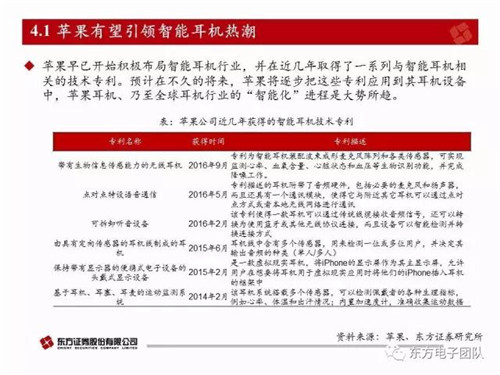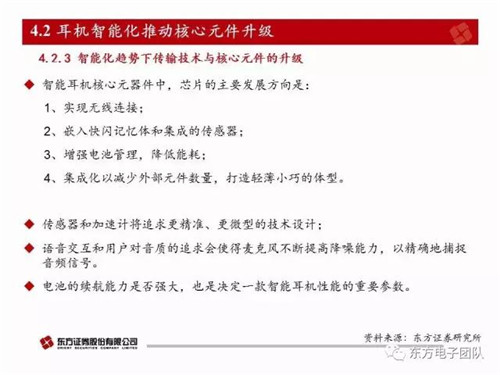 智能耳機有望成為下一個風口:蘋果去年發(fā)布AirPods,有望引領智能耳機熱潮,推動全球耳機智能化進程,在此趨勢下耳機傳輸技術與核心元件將迎來升級需求,歌爾可以為智能耳機的藍牙、3D封裝、傳感器等環(huán)節(jié)提供整體技術解決方案,在市場占有絕對領先地位,目前公司已瞄準智能耳機的廣闊市場,并同硅谷公司展開關于智能耳機相關合作,未來有望實現(xiàn)新的業(yè)績增長。