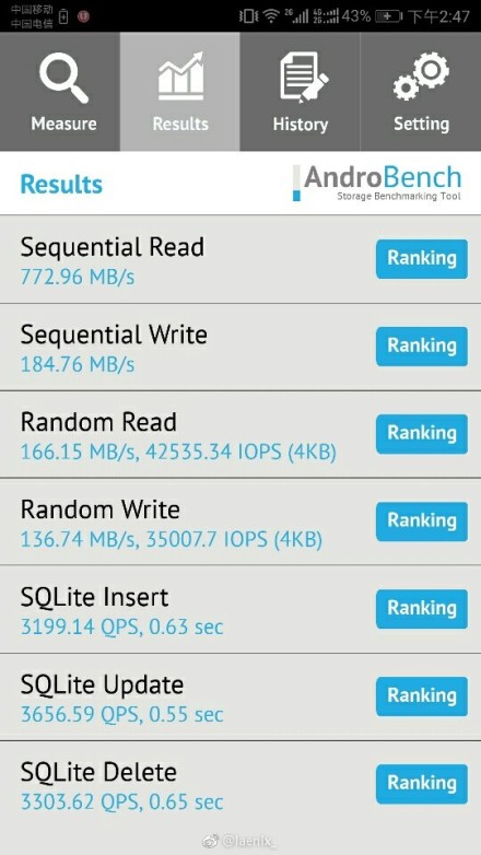 華為官方數(shù)據(jù),麒麟960支持UFS2.1各項(xiàng)讀寫(xiě)性能領(lǐng)先