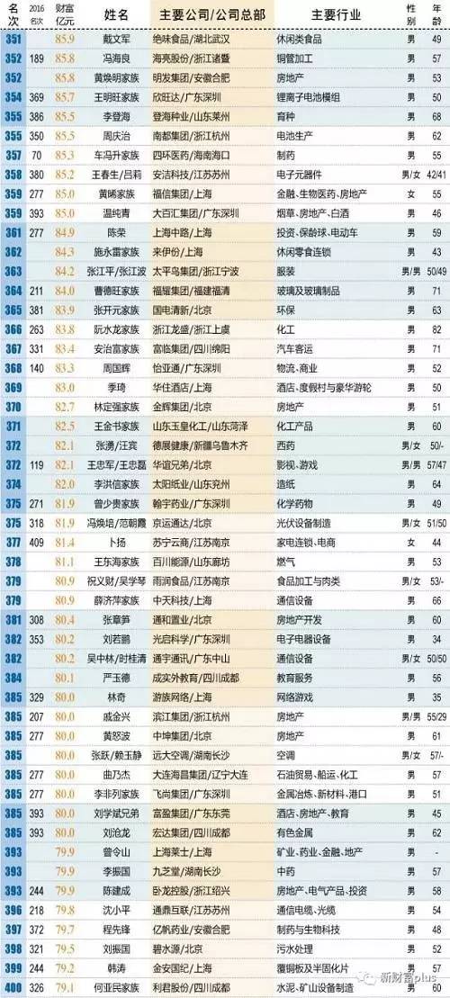 十年前富人榜上的富豪只有93位還穩(wěn)坐在今天的榜單上。今年富人榜上的新面孔多達122人,意味著去年榜者的人里有122位跌出榜單。