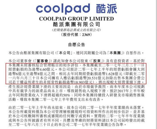 據(jù)悉,酷派集團(tuán)(02369.hk)于4月21日發(fā)布公告,集團(tuán)截止2017年3月31日經(jīng)營(yíng)虧損約為港幣4.6億元。預(yù)計(jì)2017年上半年的經(jīng)營(yíng)虧損會(huì)擴(kuò)大到6億-8億港元之間,相比去年同期經(jīng)營(yíng)虧損港幣1.628億元,出現(xiàn)較大經(jīng)營(yíng)業(yè)績(jī)下滑。
