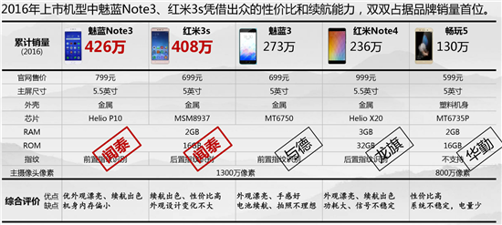 2016年,由“嘉興制造”的魅藍Note3、紅米3S憑借426萬以及408萬的銷量分別占據(jù)ODM品牌單款產(chǎn)品銷量前兩位。