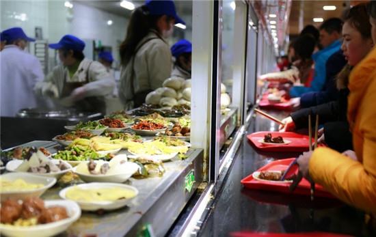 參觀完工廠后,在強烈要求下,工作人員帶我們參觀了員工食堂,看起來工人們的生活很不錯。