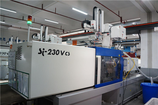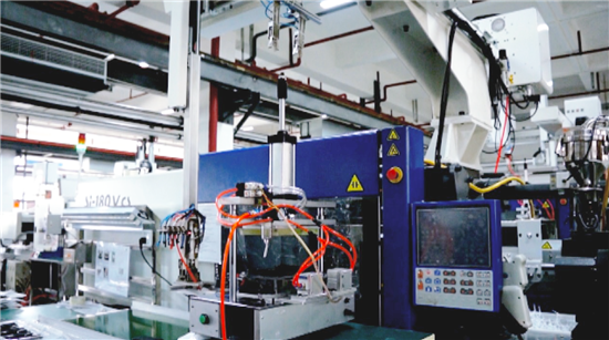 在器配件車間可以看到,全自動注塑機械臂不僅可以將外殼準(zhǔn)確取出并切割毛邊,還能自動進行組立操作,員工也從28人急劇縮減到4人。以往人工操作注塑機,每臺需要1人,成型周期長,每小時產(chǎn)能240臺。采用自動放鋼片設(shè)備后每2臺注塑機1人,節(jié)省1人,成型周期短,每小時產(chǎn)能400臺。