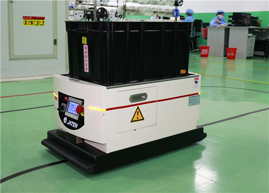 值得一提的是利用磁導(dǎo)航引導(dǎo)技術(shù)的搬運機器人,可根據(jù)設(shè)定好的路線,將物料及時準(zhǔn)確地運送到生產(chǎn)線,最高承載300kg,配有安全感應(yīng)器,節(jié)省大量人力。在以前KT倉發(fā)料到產(chǎn)線,由人工完成,每個班需要投入人力2人完成此動作,不間斷的給產(chǎn)線配送所需物料?,F(xiàn)在使用AGV自動發(fā)料,產(chǎn)線需求物料直接通過點料系統(tǒng)提前報缺,由AGV負責(zé)配送產(chǎn)線所需物料;導(dǎo)入后每個班可節(jié)約2人。