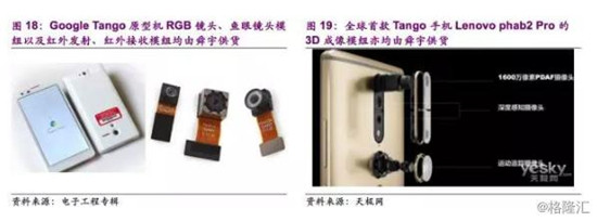 公司在3D成像領(lǐng)域先發(fā)優(yōu)勢顯著,技術(shù)布局深遠,且在TOF、散斑結(jié)構(gòu)光、編碼結(jié)構(gòu)光三大主流方案均具備量產(chǎn)經(jīng)驗。目前業(yè)界量產(chǎn)3D成像產(chǎn)品模組基本由舜宇供貨,包括Google Tango原型機、Lenovo phab2 Pro等等。