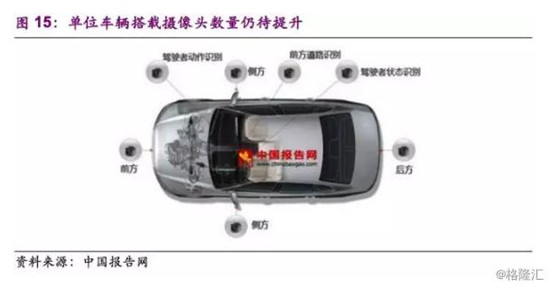 目前車載鏡頭行業(yè)滲透率仍較低,單位車輛平均搭載鏡頭一顆不到。除相對普及的后視鏡頭外,智能駕駛的實現(xiàn)要求車輛搭載前視、環(huán)視、手勢識別等多顆攝像頭,保守估計約7顆。隨著智能駕駛的深入發(fā)展,單位車輛搭載鏡頭數(shù)目將明顯提升,且鏡頭規(guī)格也將持續(xù)深化,車載鏡頭市場空間相當可觀。