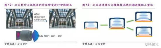 寬視場角。視場角的增大容易導致外圍畸變,公司可通過結(jié)構(gòu)設計的優(yōu)化進行智能矯正。目前公司手機鏡頭的視場角已可以達致120-150度,且已有一定客戶開始使用。
