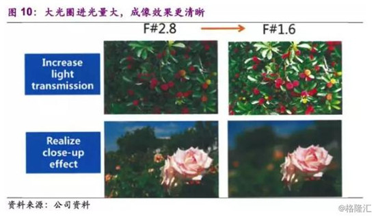 大光圈。手機鏡頭的光圈正由F2.8向F1.6演變,光圈的增大對手機鏡頭供應商的光學設計及制造能力提出更高要求,目前舜宇F1.65的大光圈鏡頭即將投入量產(chǎn),可見其強勁技術(shù)實力。