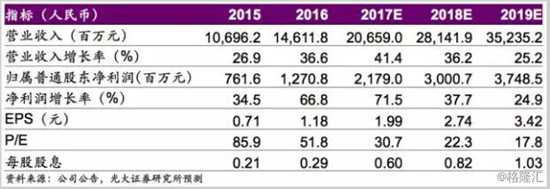綜合公司2017H1各產(chǎn)品出貨量增長強勁,下半年盈利水平持續(xù)受益于產(chǎn)品結(jié)構(gòu)改善和雙攝放量,我們預計17-19年凈利潤預計增長72%、38%和25%至21.8、30.0和37.5億元,復合增長率超過40%,重申買入評級,目標價88元港幣,分別對應17-18年38x和28x的PE,2017年0.9x的PEG,較當前股價有28%的上漲空間。