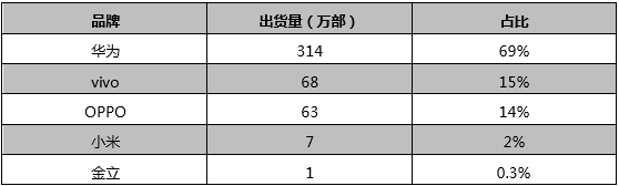 由于國內(nèi)高端智能機機型較少,因此高端市場智能手機出貨量排行榜僅統(tǒng)計了前十名機型。入榜的品牌只有華為、vivo、OPPO、小米和金立,雖然入榜的品牌達(dá)到5個,但其品牌集中度甚至高于中低端智能機市場,華為的機型占了高端暢銷機型TOP10的一半,是國內(nèi)高端機型的生產(chǎn)大戶,華為品牌的暢銷機型出貨量占據(jù)TOP10的近7成市場。而vivo和OPPO上榜的機型分別只有2款和1款,分別占據(jù)15%和14%。
