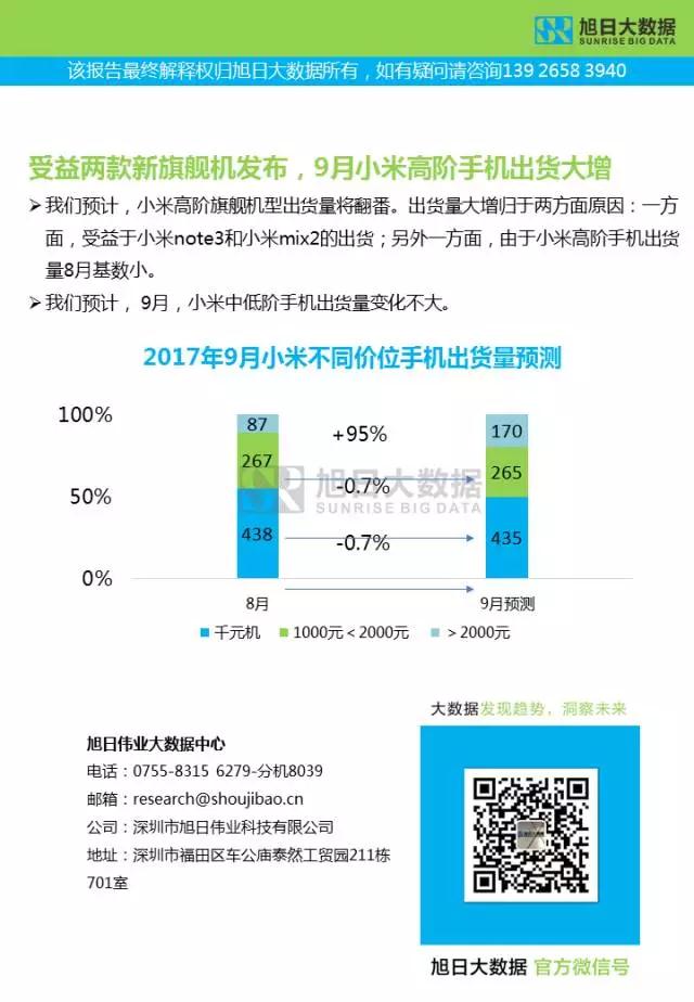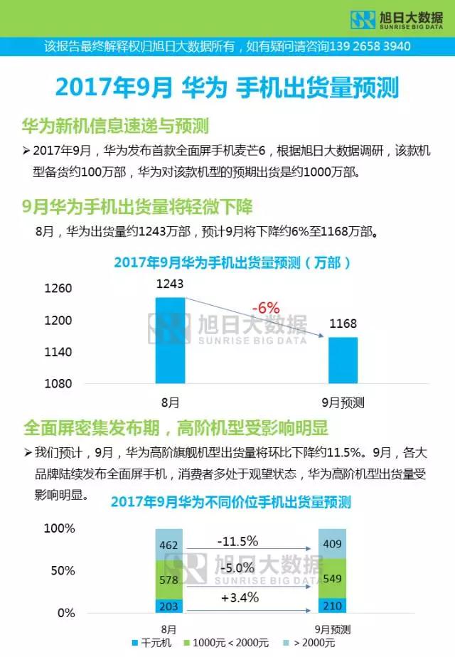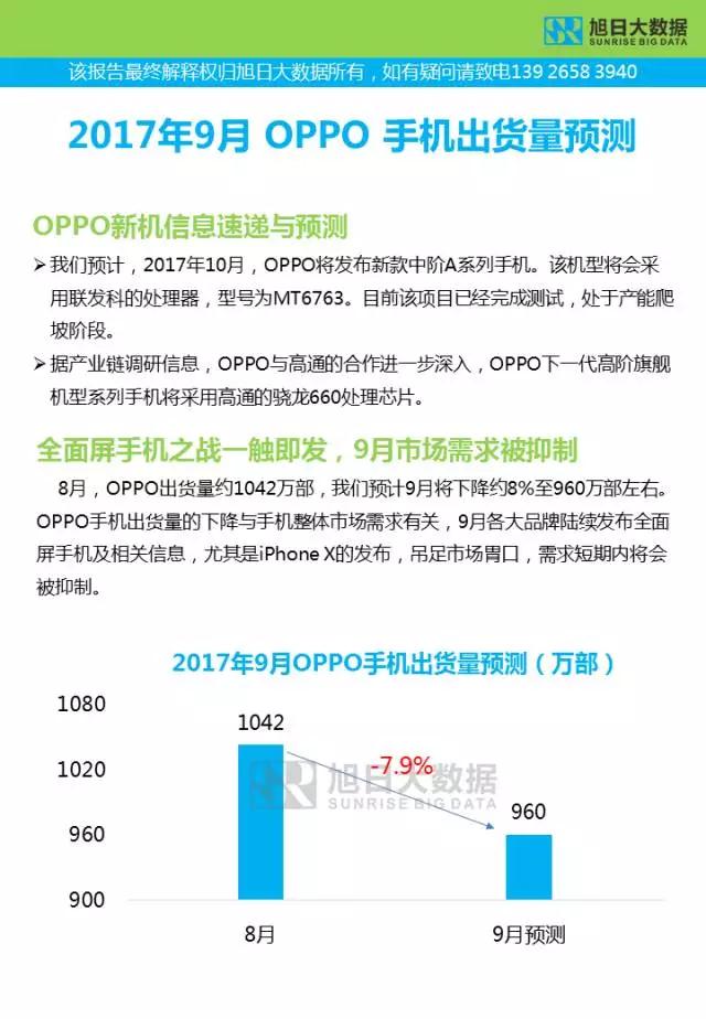 2017年9月華為OPPOvivo小米手機(jī)出貨量預(yù)測