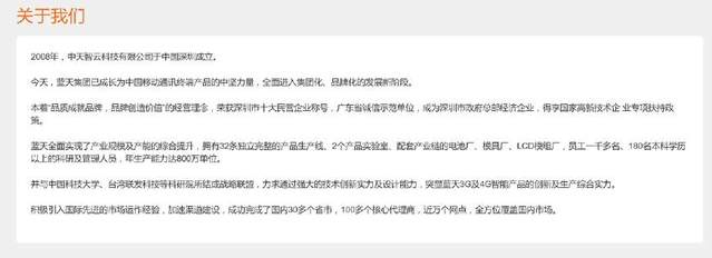 網(wǎng)站空洞就算了,公司介紹也是漏洞百出。其官網(wǎng)稱該公司于2008年成立,而查詢發(fā)現(xiàn)其實際成立時間為2015年12月25日。另外介紹提到的“藍天集團”并不知道是什么公司。