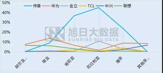 2016年中國品牌在非洲各國出貨量及市場份額