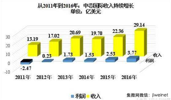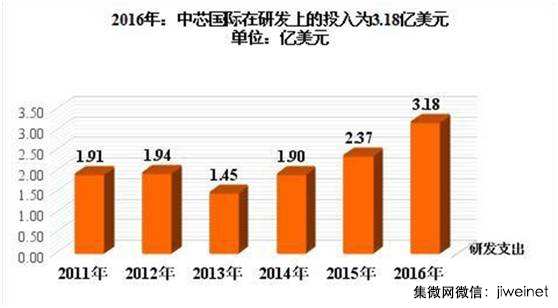 因此中芯需要更多的技術(shù)積累和研發(fā)投入??聪聢D,雖然穩(wěn)步提升,但是2016年中芯的研發(fā)投入僅為3.18億美元,需要進(jìn)一步的加大研發(fā)力度。實(shí)際上,相對收入來說,3.18億美元研發(fā)投入已經(jīng)占到了中芯國際收入的10.9%,已經(jīng)是非常高的水平了。制約中芯國際研發(fā)投入增長的是它的收入不高,2016年只有不到30億美元,也就是說中芯國際如果要不停的保持研發(fā)支出,必須先將自己的營收做大。經(jīng)常有人說,中國制造大而不強(qiáng),實(shí)際上,先將企業(yè)做大往往更能把企業(yè)做強(qiáng)。