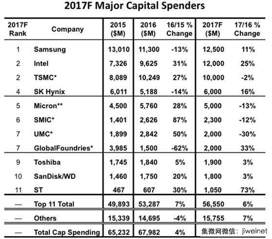 2016年的資本支出,中芯國際26.26億美元,增長87%,臺積電的資本支出為102.49億美元,增長27%。中芯是世界上資本支出增長最快的,但是差距還很大。
