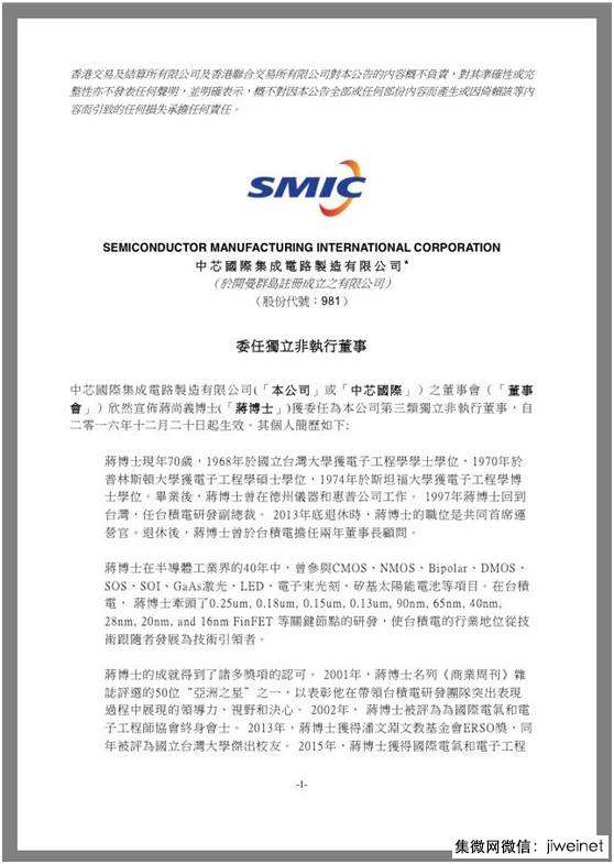 另一位就是梁孟松了,2017年10月16日中芯國際宣布任命其為共同CEO,和趙海軍一起形成雙CEO的局面,可見中芯國際對其重視。