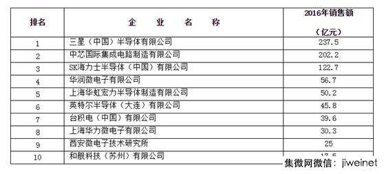 根據(jù)美國市場研究機(jī)構(gòu)ICInsights統(tǒng)計(jì),2016年,全球排名前十的芯片代工廠商為: