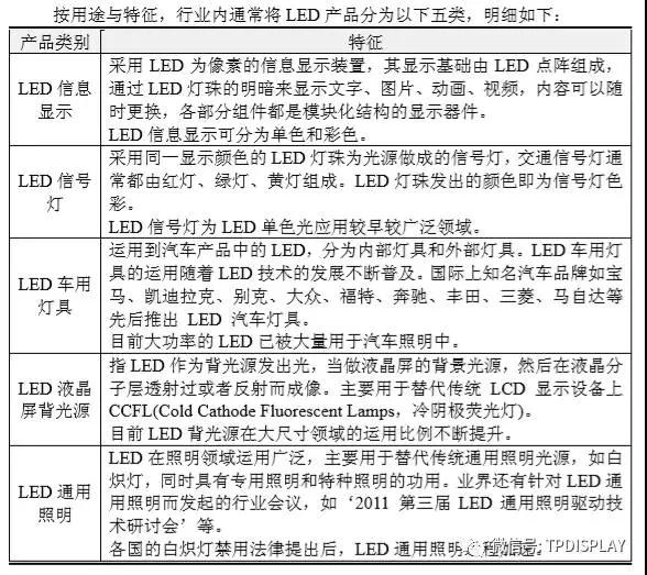 2、LED 應(yīng)用領(lǐng)域及其分類