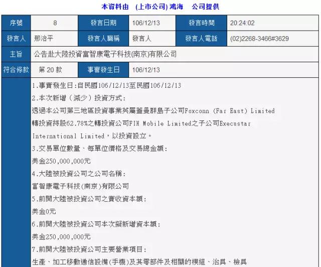 其中注冊成立富智康(南京)智能科技有限公司,注資總額約為1.2億美元。注冊成立富智康電子科技(南京)有限公司,注資總額約為2.5億美元。