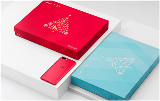 ▲vivo X20星耀紅“雨V同行”圣誕限量版禮盒