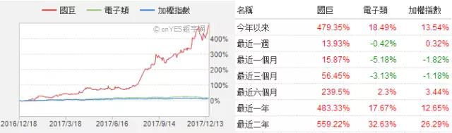 2017年以來,國巨股價上漲近5倍!
