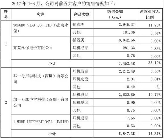 從營(yíng)收來看,2014年-2017年上半年其營(yíng)收分別為3.57億、4.06億、4.91億、3.37億,相對(duì)應(yīng)的凈利潤(rùn)分別為3083萬、3461萬、3656萬、3950萬,由此可見,今年上半年的凈利潤(rùn)已經(jīng)超過了去年全年的凈利潤(rùn),其中很重要的一個(gè)原因在于,其大客戶為小米,而小米生態(tài)鏈企業(yè)萬魔聲學(xué),為小米供應(yīng)商!