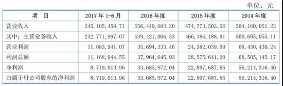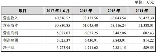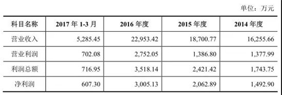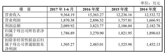 據(jù)數(shù)據(jù)顯示,數(shù)據(jù)顯示,2014-2016年,公司分別實(shí)現(xiàn)營(yíng)業(yè)收入5.63億元、6.33億元、8.16億元,凈利潤(rùn)分別為4516.58萬元、5959.65萬元12313.42萬元。此外,2017年上半年,公司營(yíng)業(yè)收入和凈利潤(rùn)分別為5.06億元和5918.01萬元。