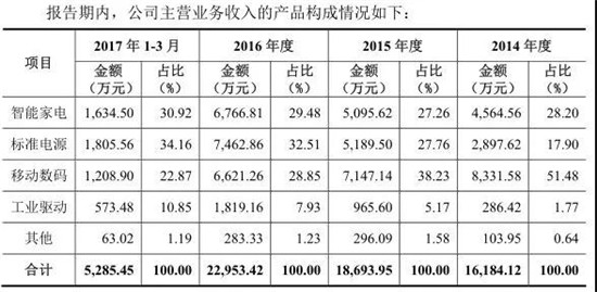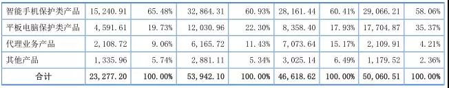 據(jù)其表示,智能手機(jī)保護(hù)類產(chǎn)品和平板電腦保護(hù)類產(chǎn)品為公司主要產(chǎn)品,2014年到2017年上半年,這兩種產(chǎn)品銷售收入分集分別為4.47億、3.65億、4.49億、1.98億,占當(dāng)期主營(yíng)業(yè)務(wù)營(yíng)收的比例分別為93.43%、78.34%、83.23%、85.21%!