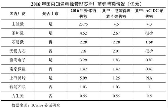 據(jù)了解,芯朋微電子主營(yíng)業(yè)務(wù)為電源管理集成電路的研發(fā)和銷售。公司專注于開發(fā)綠色電源管理集成電路,為客戶提供高效能、低功耗、品質(zhì)穩(wěn)定的電源管理集成電路產(chǎn)品。公司是國內(nèi)智能家電、標(biāo)淮電源、移動(dòng)數(shù)碼等行業(yè)電源管理芯片的重要供應(yīng)商,終端客戶包括美的、中興通訊、飛利浦、創(chuàng)維、格力等國內(nèi)外知名品牌。